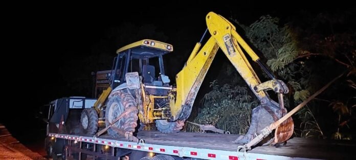 A equipe fez abordagem do suspeito, que é proprietário do local. Durante a fiscalização, foi identificado um homem operando uma retroescavadeira.