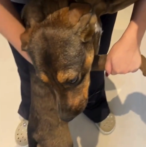 A cadela segue recebendo tratamento veterinário e, assim que estiver totalmente recuperada, deve ser colocada para adoção responsável.