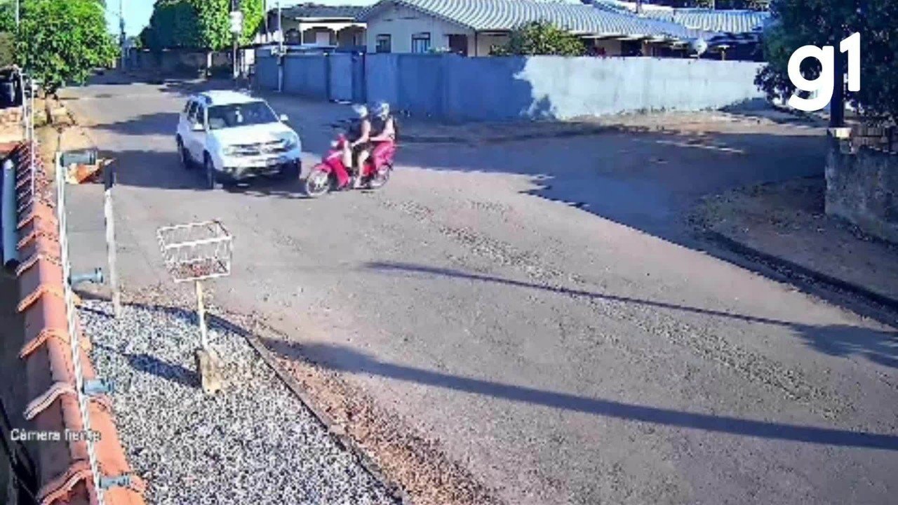 Uma mulher, de 48 anos, e o filho, de 16 anos, foram arremessados da moto em que estavam, após serem atropelados por um carro em um cruzamento no bairro Cidade Alta, em Alta Floresta, a 800 km de Cuiabá, nesta terça-feira (12). Câmeras do circuito de segurança registraram o momento (assista abaixo).