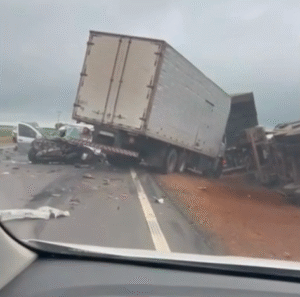 Um motorista morreu após se envolver em um acidente de trânsito com um caminhão e uma carreta, nesta terça-feira (25), em Sorriso, a 420 km de Cuiabá. (Video abaixo)