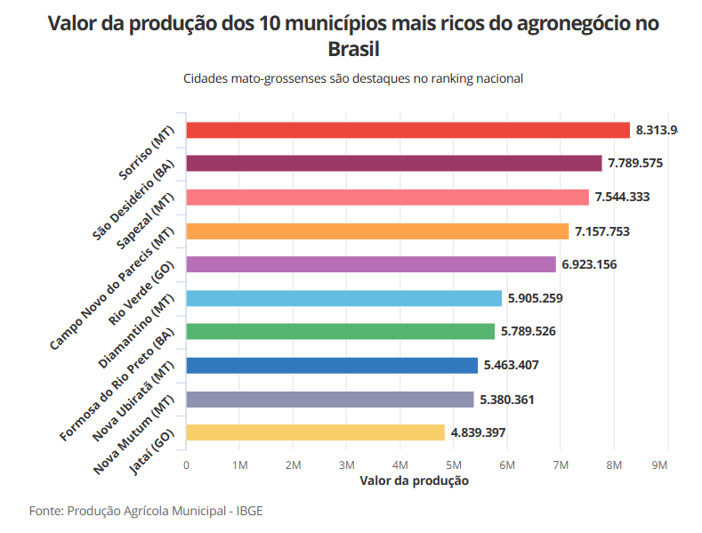 🧑🌾A força do agronegócio também ajuda a explicar por que mantém uma trajetória de expansão. De acordo com a Secretaria de Política Agrícola do MAPA, seis das dez cidades mais ricas do agronegócio brasileiro estão em território mato-grossense, reflexo direto da liderança nacional na produção de soja, milho e algodão.