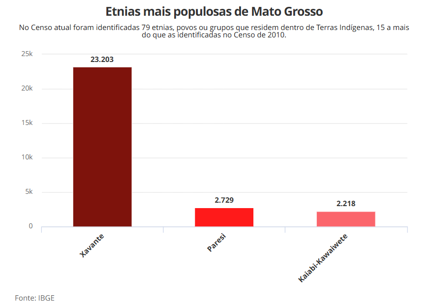 O estudo mostra que Mato Grosso tem 58.356 pessoas indígenas, com 195 etnias, povos ou grupos indígenas residentes, o que revela um aumento em comparação com o Censo de 2010, que identificou 149 etnias.