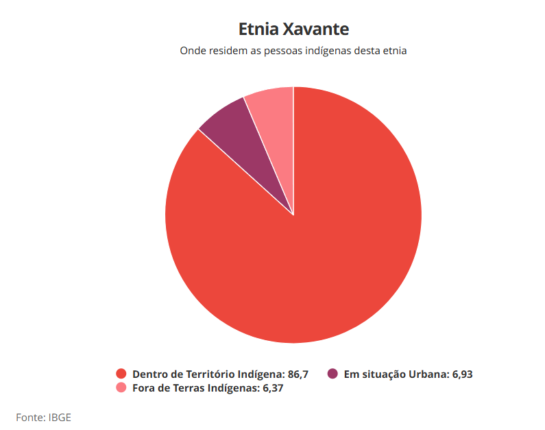 Em relação a etnia Xavante, a mais populosa, foram identificados três perfis referente a moradia: os que residem dentro do território, os que residem fora e os que vivem nas cidades, em áreas urbanas.