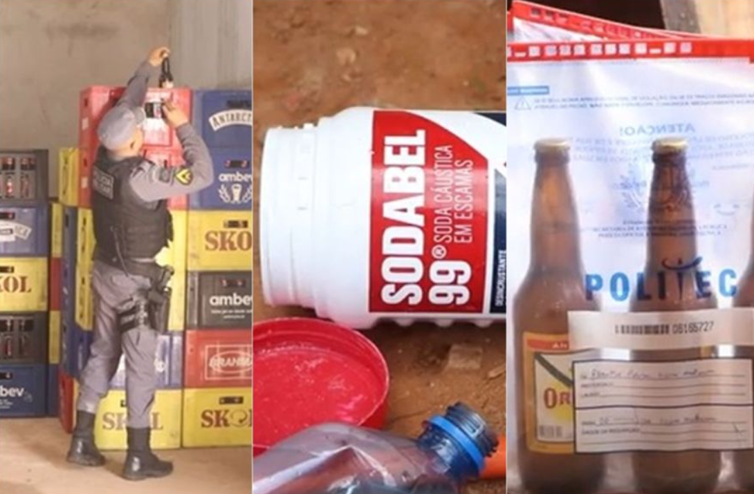 Durante a operação, os policiais encontraram soda cáustica, que, segundo o perito da Politec, Jomar Magalhães, era usada na retirada de rótulos originais. No entanto, não está descartada a hipótese de o produto ter sido misturado ao líquido da bebida.