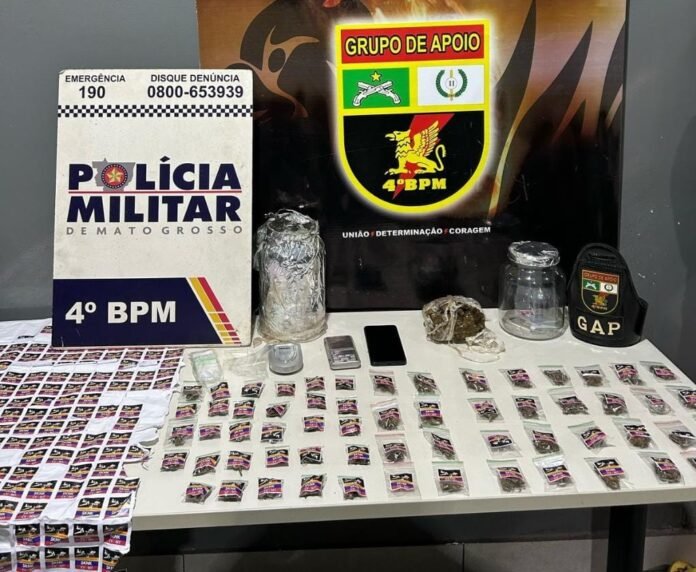 Uma adolescente, de 16 anos, e uma mulher, de 20 anos, foram detidas por tráfico ilícito de drogas, nesta quinta-feira (20), com 62 porções de maconha, no bairro Terra Nova, em Várzea Grande. Os entorpecentes estavam escondidos em uma área de mata e embalados com o nome de uma facção criminosa.