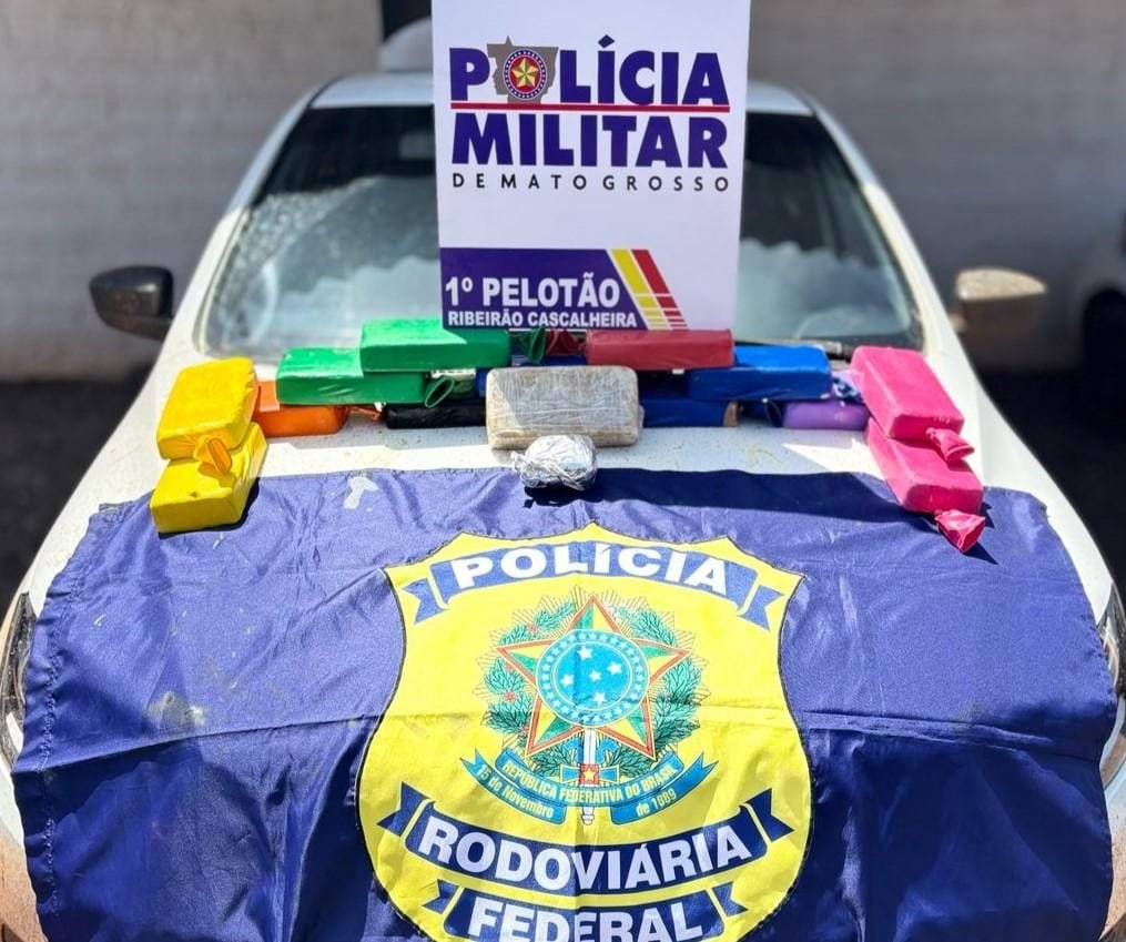 Uma ação integrada de policiais militares do 1º Pelotão e da Polícia Rodoviária Federal apreendeu, na manhã desta sexta-feira (14), 14 tabletes de substância análogas à pasta base de cocaína e prenderam um homem por tráfico de drogas, em Ribeirão Cascalheira (781 km de Cuiabá).