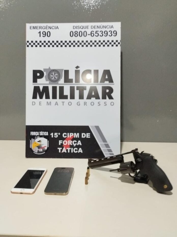 Após a denúncia, os suspeitos foram encontrados ainda no imóvel. Durante buscas no local, os policiais localizaram um revólver calibre .38 com algumas munições. A dupla foi conduzida à delegacia para registro do boletim de ocorrência.