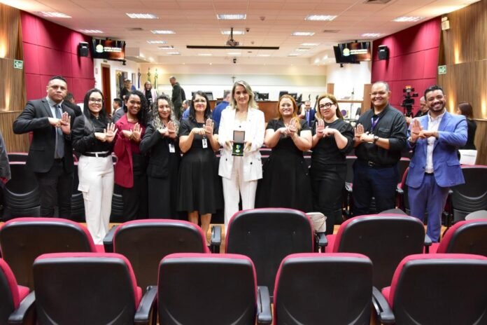 A Secretaria de Estado de Assistência Social e Cidadania (Setasc) recebeu a Medalha de Mérito Eleitoral, uma distinção concedida pelo Tribunal Regional Eleitoral de Mato Grosso (TRE-MT). Esta homenagem simboliza o reconhecimento da Justiça Eleitoral pela contribuição da Setasc por meio da Central de Interpretação de Libras (CIL) nas Eleições Municipais de 2024.