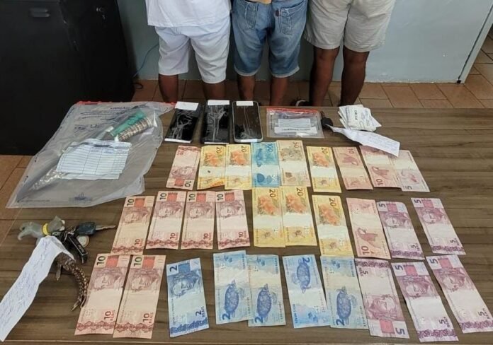 Nas buscas, foram apreendidos um veículo Fiat Uno Mille, um Gol 1.0 preto, R$ 416 em espécie, três celulares, diversos comprovantes de depósito bancário em nome de um suspeito, dois pinos de cocaína e duas facas. Os detidos foram encaminhados à delegacia.
