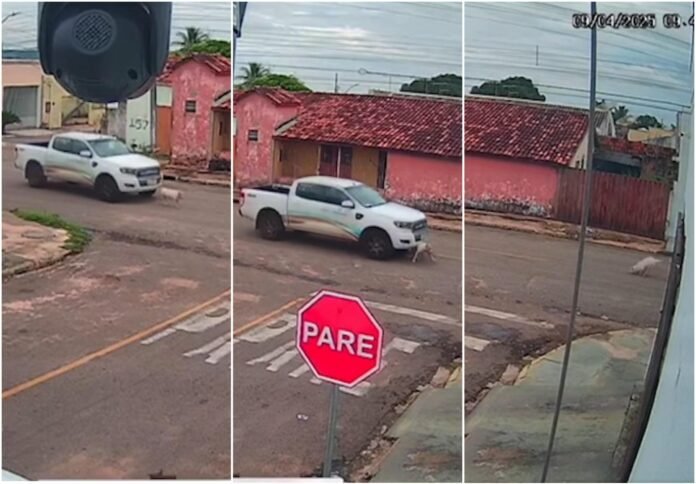 Nas imagens é possível ver o veículo andando lentamente no início, mas depois acelera e começa arrastar o animal