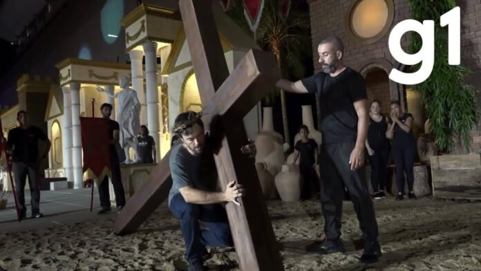 As apresentações do espetáculo da Paixão de Cristo começam nesta terça-feira (15), às 19h, na Arena Pantanal, em Cuiabá. O evento, que tem entrada gratuita, será realizado no Setor Oeste do estádio e segue até o domingo de Páscoa (20).
