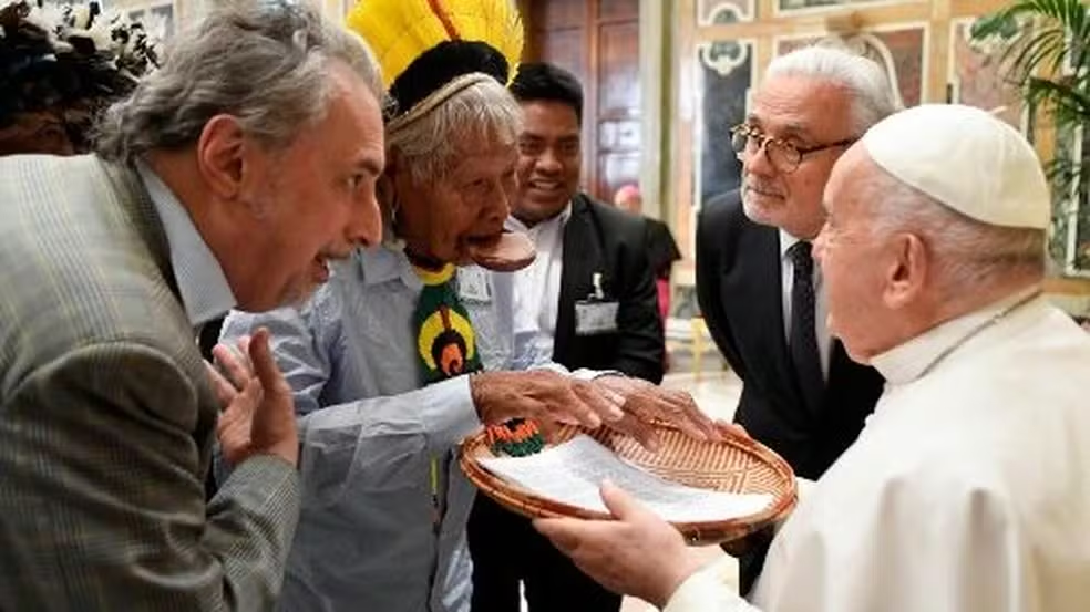 Em maio do ano passado, o cacique Raoni esteve com o papa no Vaticano. Ele entregou uma carta com pedido de ajuda para conscientizar os parlamentares e governantes do Brasil sobre a importância de proteger as florestas e os povos originários.