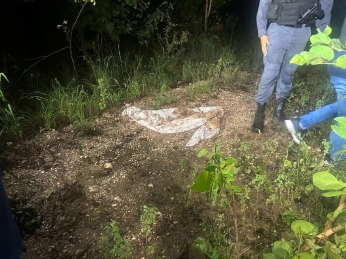 Em buscas no local, a polícia encontrou as placas do veículo roubado caídas. Ainda na mata, um lençol foi encontrado na frente de um poço. Dentro, quando os policiais olharam, já encontraram o corpo de uma jovem, sem sinais vitais e com as mãos e pernas amarradas.