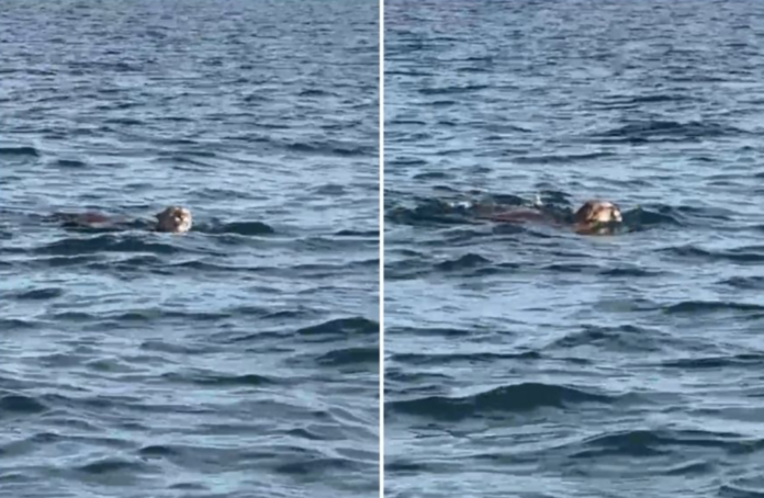 Os amigos Matheus Moreira e Paulo Roncaglio flagraram uma onça parda nadando em meio ao Lago do Manso, em Chapada dos Guimarães, a 65 km de Cuiabá, nessa segunda-feira (5).