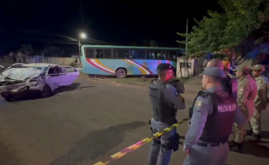 Um acidente envolvendo um carro e um ônibus deixou uma pessoa morta e seis feridas, no Bairro Jardim das Palmeiras, em Campo Novo do Parecis, a 401 km de Cuiabá, nesse domingo (18). A identidade das vítimas não foi divulgada.