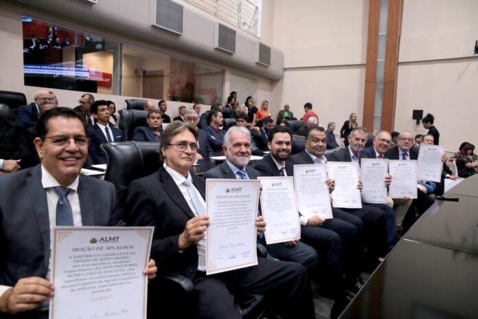 Homenagens – A sessão especial desta quarta-feira (21) também foi destinada às homenagens em razão das comemorações dos 50 anos do Sistema Fiemt e pela participação na elaboração da Agenda Legislativa da Indústria de Mato Grosso 2025. Três pessoas receberam a Medalha do Mérito Industrial “José Garcia Neto” e mais de 60 moções de aplausos foram entregues. Receberam a medalha: Antônio Bornelli Filho, Ednei Blasius e Heitor Trentin.