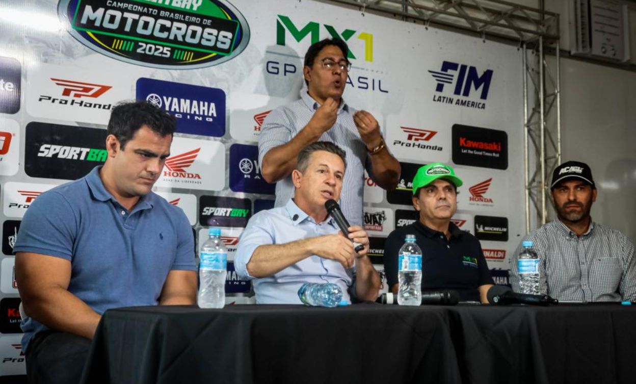 O governador de Mato Grosso, Mauro Mendes, participou dos primeiros treinos dos pilotos da 3ª Etapa do Campeonato Brasileiro de Motocross nesta sexta-feira (23.5). Na ocasião, ele disse que a pista do Parque Novo Mato Grosso, onde ocorre o campeonato, tem estrutura de padrão internacional e posicionará Mato Grosso como referência para grandes eventos do esporte.