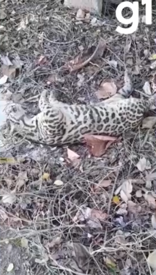 O felino foi localizado por um morador que passava pela região e registrou imagens do animal já sem vida, próximo à saída do terreno, nas imediações de uma lavanderia. No vídeo, é possível ver que a jaguatirica não exibe marcas visíveis de agressão ou atropelamento.