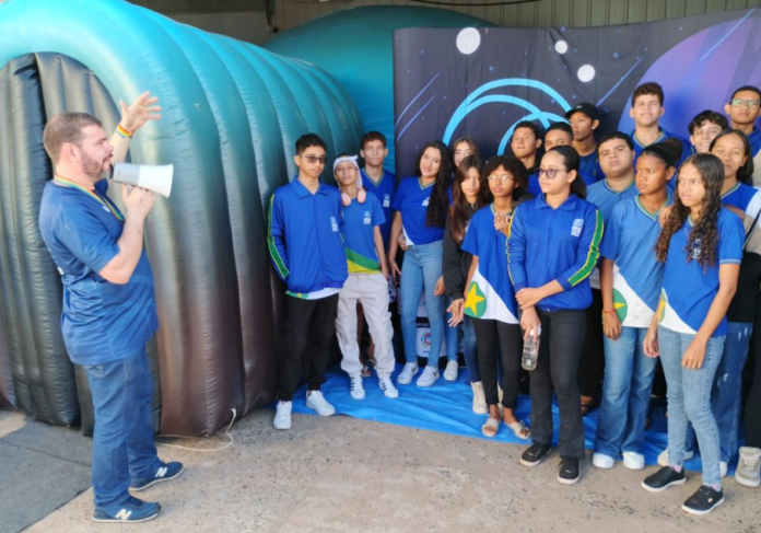 O projeto “MT Imersivo: Fronteiras” encerra suas atividades nesta sexta-feira (30.5), das 7h às 11h e das 13h às 17h, na Escola Estadual Dante Martins de Oliveira, em Várzea Grande. Contemplado em edital da Lei Paulo Gustavo promovido pela Secretaria de Estado de Cultura, Esporte e Lazer (Secel), a iniciativa levou um planetário itinerante em formato de cinema com sessões educativas sobre ciência, astronomia e cultura a mais de 20 mil estudantes.
