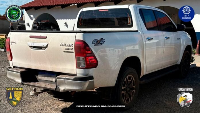 De acordo com a PM, a dupla estava em uma caminhonete com sinais de identificação adulterados. Em tentativa de abordagem, o motorista fugiu com o comparsa em alta velocidade.