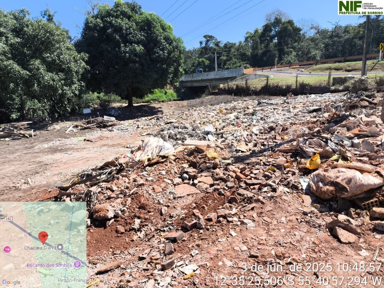 De acordo com o boletim de ocorrência, ele foi flagrado estacionando um caminhão com dois compartimentos de lixo e jogando os resíduos às margens da MT-242, onde é localizado o Rio Lira.