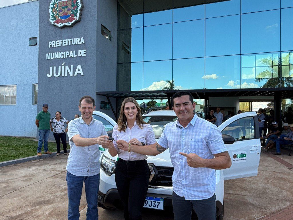 No período da tarde, foi a vez da cidade de Juína ser contemplada com um veículo modelo Duster, destinado ao Sine municipal. A aquisição foi realizada com recursos de emenda parlamentar no valor de R$ 100 mil, com contrapartida de R$ 36 mil da prefeitura.