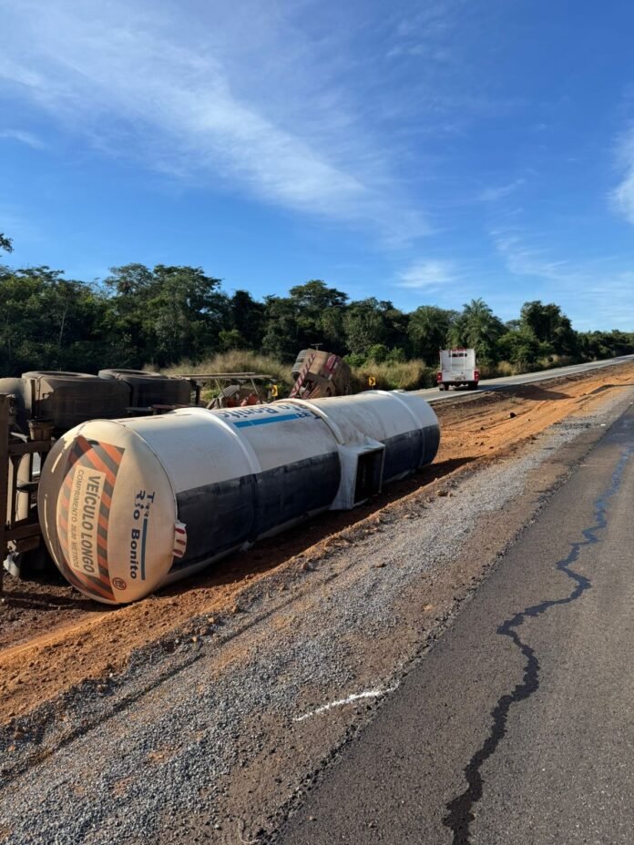 Um trecho da BR-163 precisou ser totalmente interditado nos dois sentidos na manhã deste domingo (8) após uma carreta-tanque carregada com etanol tombar no km 559 da rodovia, entre Diamantino e Nova Mutum. Não há previsão oficial para a liberação da via.