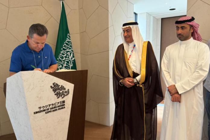 O governador Mauro Mendes se reuniu com o embaixador da Arábia Saudita no Japão, Dr Ghazi, durante a Expo Osaka 2025, nesta segunda-feira (9.6). O objetivo do encontro foi estreitar relações tanto culturais, como comerciais.