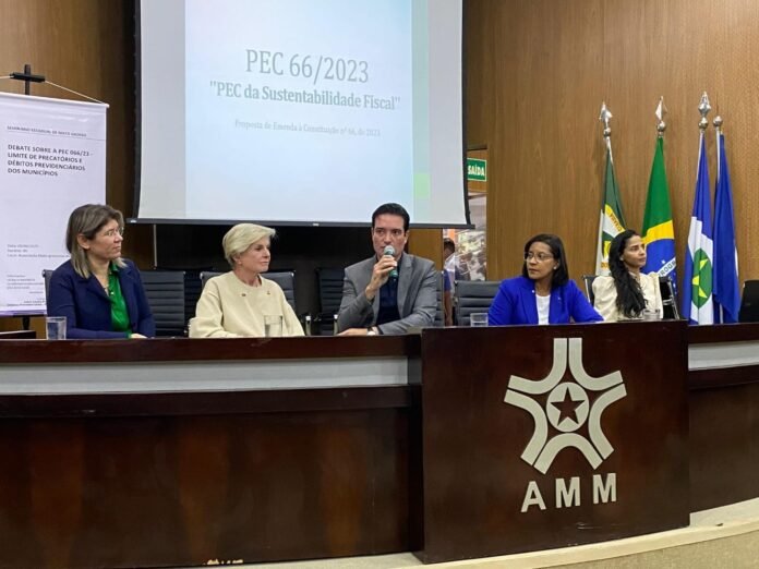Nesta segunda-feira (9), a Comissão Especial da Câmara dos Deputados e a Associação Mato-grossense dos Municípios abriram uma ampla discussão sobre a Proposta de Emenda à Constituição – PEC 66/2023 -, que está em tramitação no Congresso Nacional, na sede da AMM, em Cuiabá.