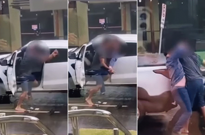 Nas imagens, é possível ver o carro do agressor batendo na traseira da caminhonete da vítima, que consequentemente, atinge um carro à frente. Na sequência, o agressor desce do carro e vai até a caminhonete da vítima, abre a porta e começa atacá-lo com golpes de faca. Ambos entram em luta corporal durante cerca de um minuto, até que a vítima ferida consegue se desvencilhar e se abrigar em uma loja. Já o agressor entra no carro e deixa o local.