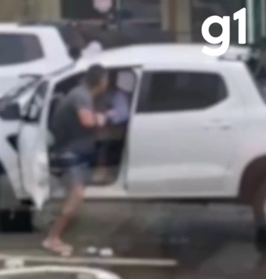Ambos entram em luta corporal durante cerca de um minuto, até que a vítima ferida consegue se desvencilhar do suspeito e se abrigar em uma loja. Já o suspeito entra no carro e deixa o local.