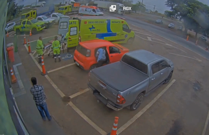 No registro, é possível ver a equipe da concessionária responsável pelas BR-163/364 e Rodovia dos Imigrantes, retirando Mariane do carro de aplicativo e a transferindo em uma maca para a ambulância, onde o parto foi realizado.