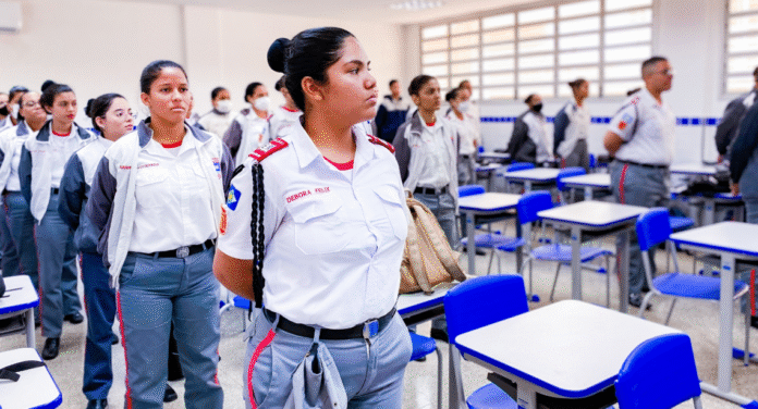 Com isso, das 628 escolas da rede estadual, 100 unidades agora são cívico-militares. Elas atendem mais de 80 mil estudantes, com a missão de diminuir a evasão, evitar a violência no ambiente escolar e possibilitar ações que fortaleçam o avanço da aprendizagem dos estudantes.