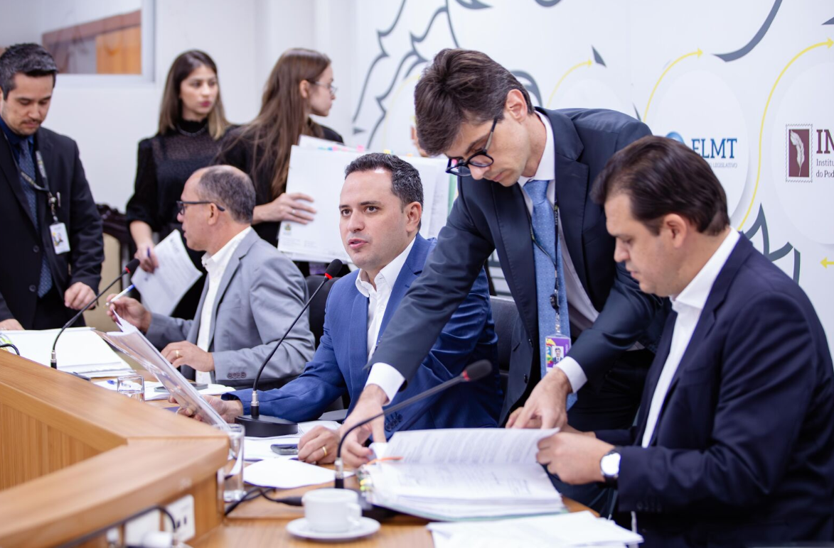 A reunião foi presidida pelo deputado Diego Guimarães (Republicanos) e secretariada pelos deputados Fábio Tardin (PSB) e Thiago Silva (MDB), e contou ainda com a participação remota do deputado Dilmar Dal’Bosco (União).