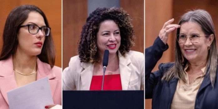 A Assembleia Legislativa de Mato Grosso (ALMT) alcançou um marco histórico na representatividade feminina. Pela primeira vez, três deputadas exercem simultaneamente mandatos na Casa. Além da titular, deputada Janaina Riva (MDB), também estão em exercício a Professora Graciele (PT) e Valdeniria Dutra (PSB).