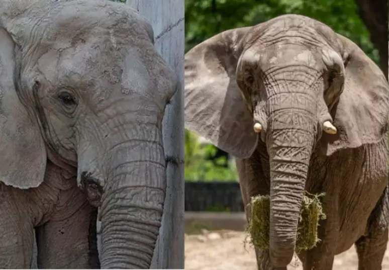 As duas elefantas percorreram mais de 2 mil km até o novo lar, depois de décadas presas em zoológicos.