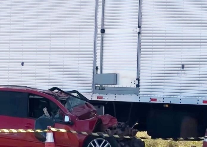 Um motorista morreu, neste domingo (13), após o carro em que ele estava bater contra um caminhão, na BR-163, em Lucas do Rio Verde, a 360 km de Cuiabá.