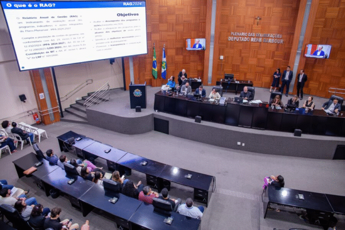 No Plenário de Deliberações, a Comissão de Fiscalização e Acompanhamento da Execução Orçamentária (CFAEO) da Assembleia Legislativa realizou audiência pública para apresentação do Relatório Anual de Gestão (RAG), referente a 2024, na tarde desta quinta-feira (17). O secretário adjunto de Planejamento e Governo Digital de Mato Grosso, Sandro Brandão, conduziu a exposição dos principais pontos do documento de mais de 3600 páginas, um dos principais instrumentos de avaliação de programas, indicadores e ações previstos no Plano Plurianual (PPA).