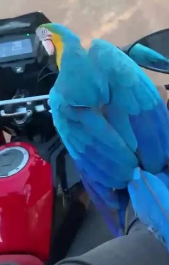 Uma arara-canindé tem chamado atenção de moradores e pessoas que passam pelo sítio do Pindaival, na região Rosário Oeste, a 133 km de Cuiabá, devido à simpatia e recepção com os visitantes. Vídeos feitos no sítio nesta semana mostram o pássaro, apelidado de Blue da Vila, pegando ‘carona’ com motoristas e motociclistas (assista abaixo).