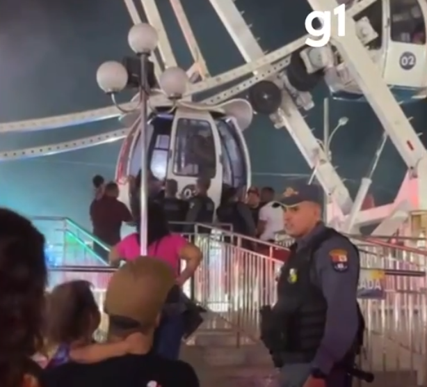 Em nota, o Sindicato Rural de Cuiabá, responsável pela administração da Expoagro, informou que o sistema de segurança da roda gigante do parque foi acionado devido a um aquecimento nos equipamentos e que, por precaução, o brinquedo teve seu funcionamento parado até o diagnóstico final sobre o que causou a falha.