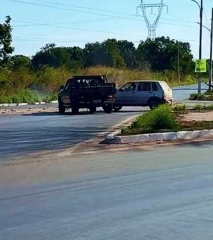 “Gravei este vídeo para falar sobre a necessidade urgente de melhorias na rotatória da entrada do bairro Pedra 90, e no exato momento da gravação, presenciamos um acidente no local”, disse.