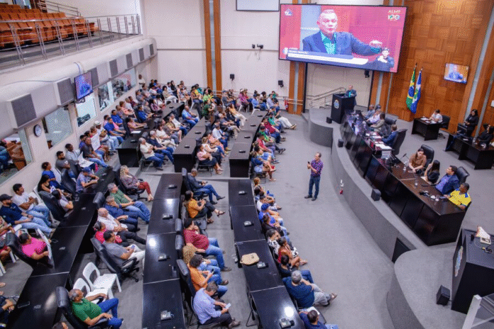 Realizado no Plenário das Deliberações Deputado Rene Barbour, o encontro foi conduzido pelo deputado Wilson Santos e também contou com a presença do senador Wellington Fagundes (PL) e de representantes de diversos bairros de Cuiabá.