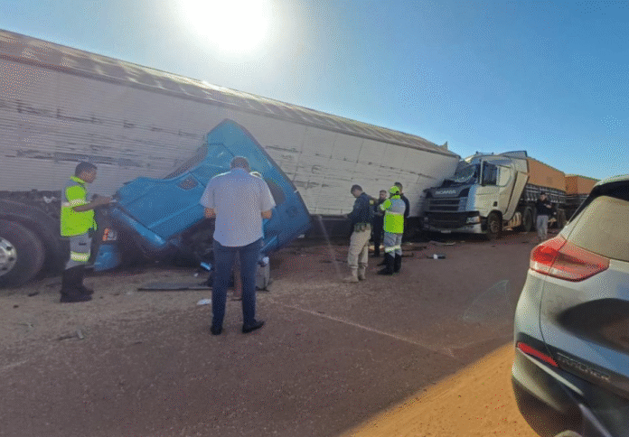 Um homem ficou ferido em uma batida envolvendo 3 carretas na manhã desta quarta-feira (23), na BR-364, em Rondonópolis (212 km ao sul de Cuiabá).