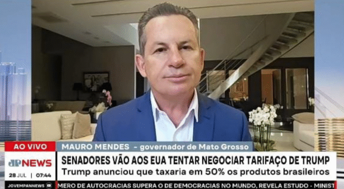 O governador Mauro Mendes (União) comentou na manhã desta segunda-feira (28), sobre a crise internacional vivida pelo Brasil. Segundo ele, o país está em uma situação tão ruim politicamente, que até a Venezuela resolveu aplicar uma taxa de 77% aos produtos brasileiros. A declaração se dá no contexto sobre a polêmica taxação imposta pelo presidente dos Estados Unidos, Donald Trump.
