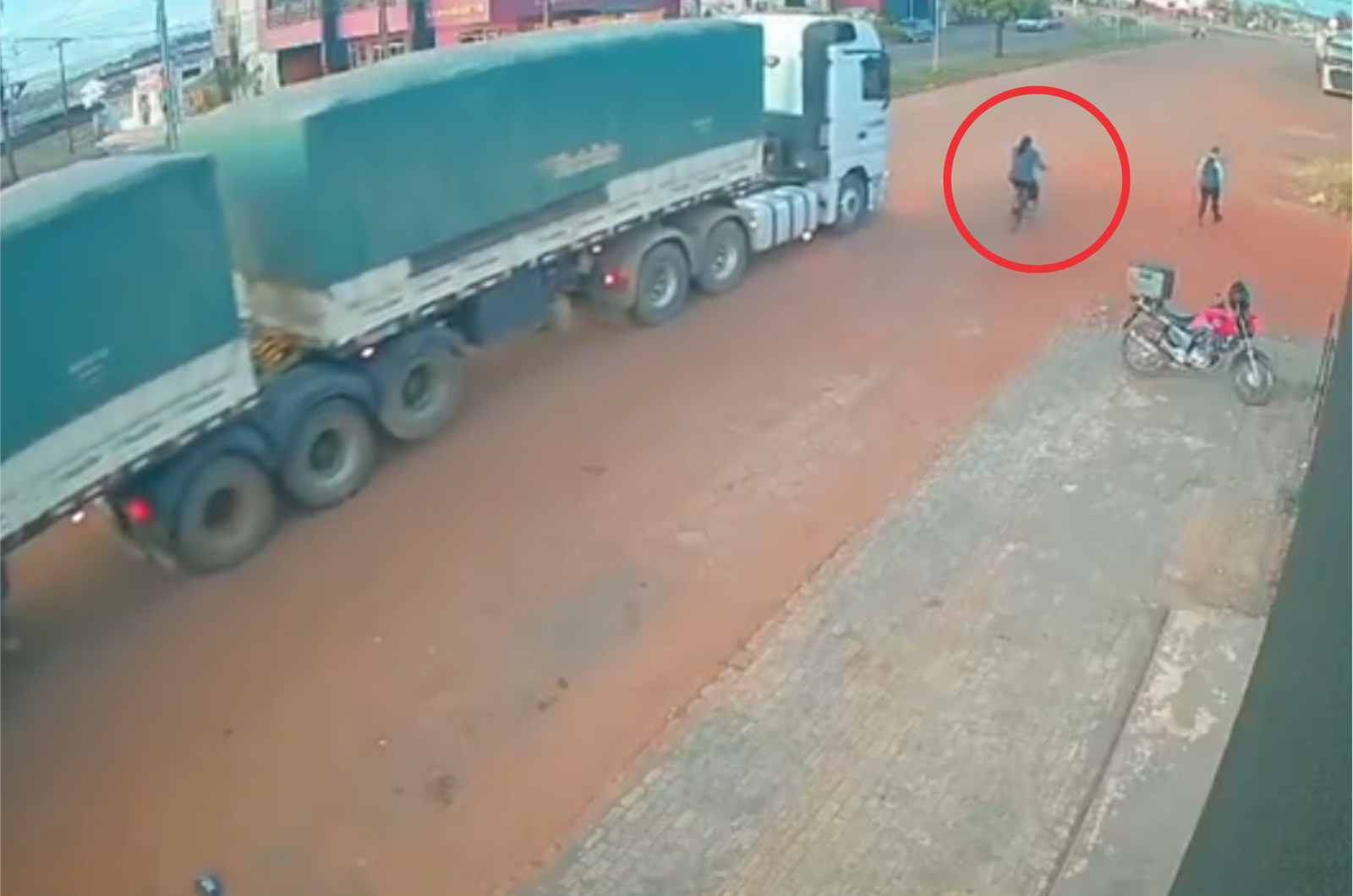 Câmeras de segurança da região registraram o momento do acidente. As imagens mostram Ledy de bicicleta ao lado da carreta. Pouco depois, ela cruza à frente do veículo e é atropelada (assista abaixo).