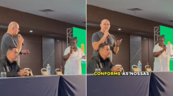 A discussão teve início após a professora dizer que “a saúde é para todos, todas e todes”, antes mesmo de realizar a palestra. Em seguida, Abilio perguntou se podia fazer um pedido à professora e começou o discurso.