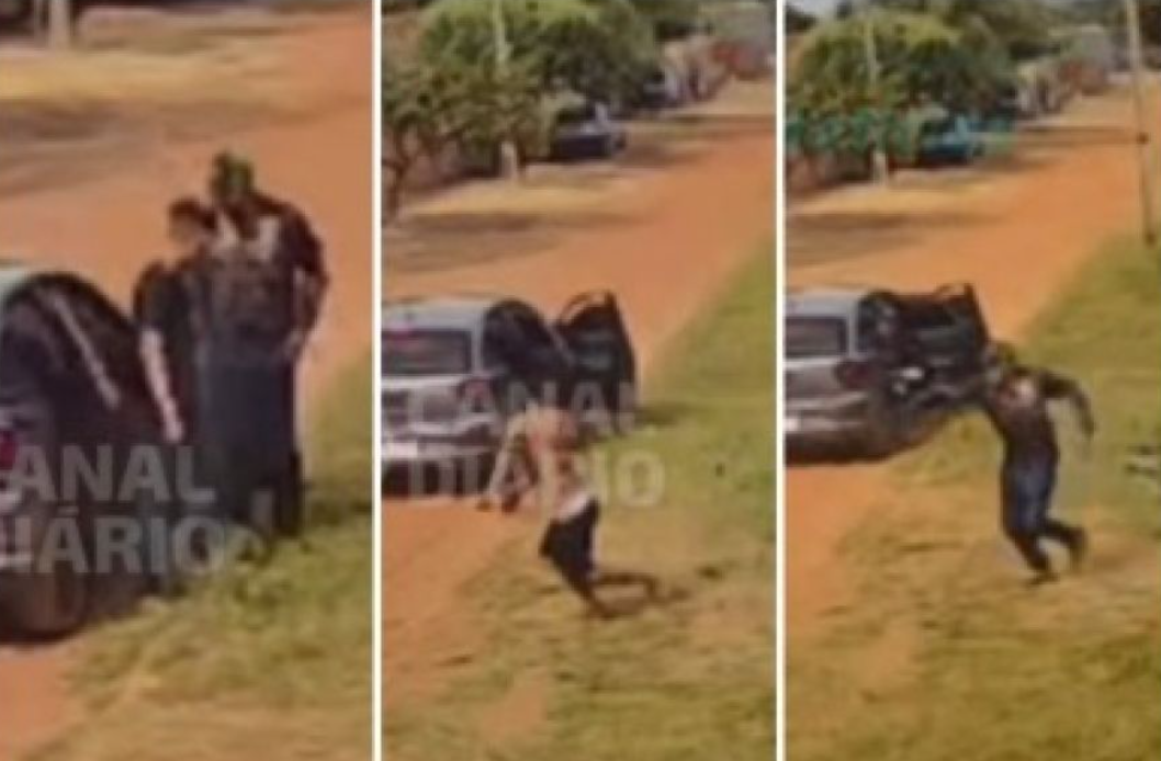 Imagens de uma câmera de segurança próxima registraram a ação dos criminosos no momento do crime.