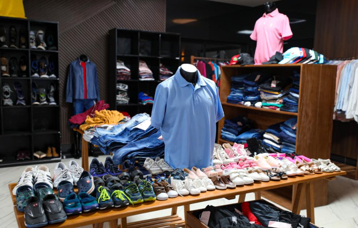 Com peças a partir de R$ 30, o bazar oferece roupas femininas, masculinas e infantis, calçados, bolsas e acessórios.