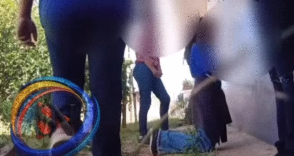 Nas imagens divulgadas nas redes sociais, mostram a aluna ajoelhada, sendo encurralada e agredida por outras meninas. Além de socos e chutes, as estudantes usam um cabo de uma vassoura para bater na vítima (vídeo abaixo)