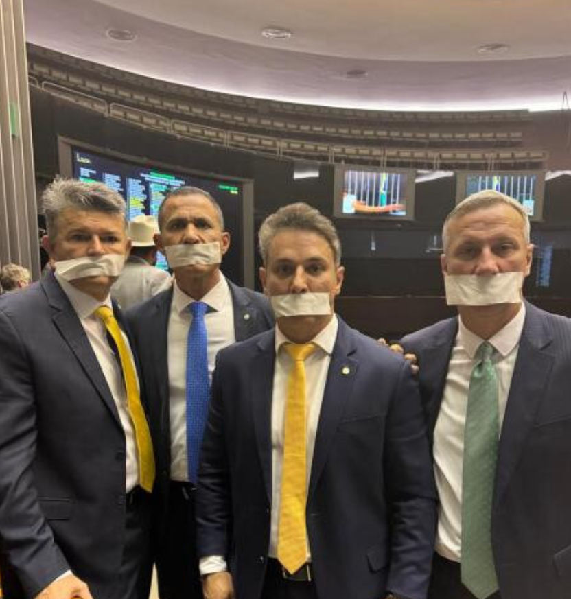 Deputados ocuparam a mesa diretora em ato que também aconteceu no Senado. Deputados e senadores usaram esparadrapo na boca em alusão ao silenciamento que tem sido obrigados pelo STF.